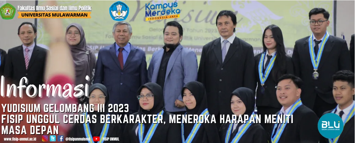Acara Yudisium kali ini bertujuan untuk memberikan apresiasi kepada para lulusan FISIP Unmul yang telah menyelesaikan studi mereka dengan sukses. Tema "FISIP Unggul Cerdas Berkarakter" menggambarkan visi FISIP Unmul dalam mencetak lulusan yang tidak hanya memiliki kecerdasan akademik yang unggul, tetapi juga memiliki karakter yang kuat dan mampu meneroka harapan dalam meniti masa depan.