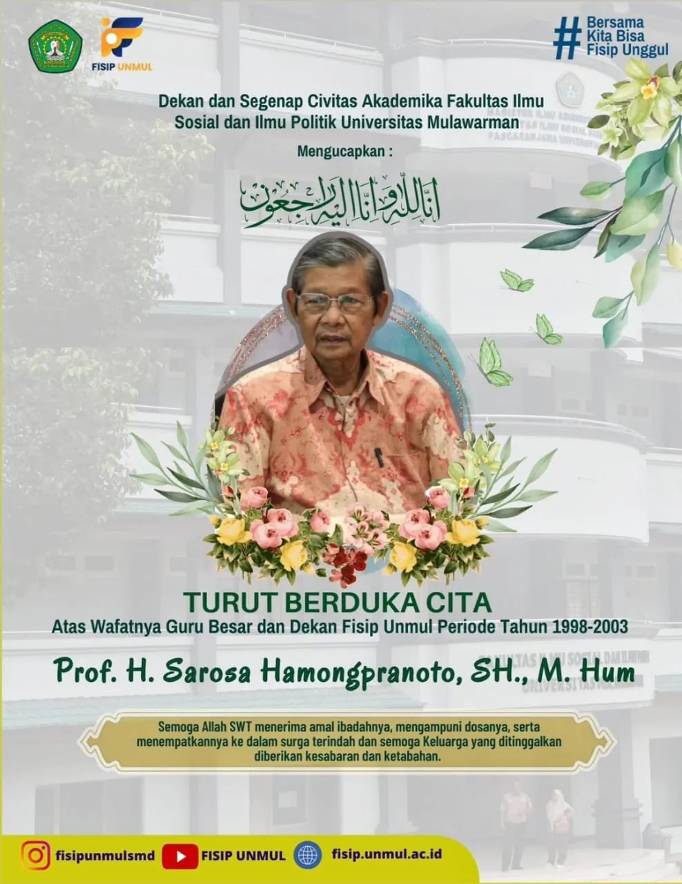 Dekan dan Segenap Civitas Akademika Fakultas Ilmu Sosial dan Ilmu Politik Universitas Mulawarman Turut Berduka Cita Atas Wafatnya Prof. H. Sarosa Hamongpranoto, SH., M.Hum