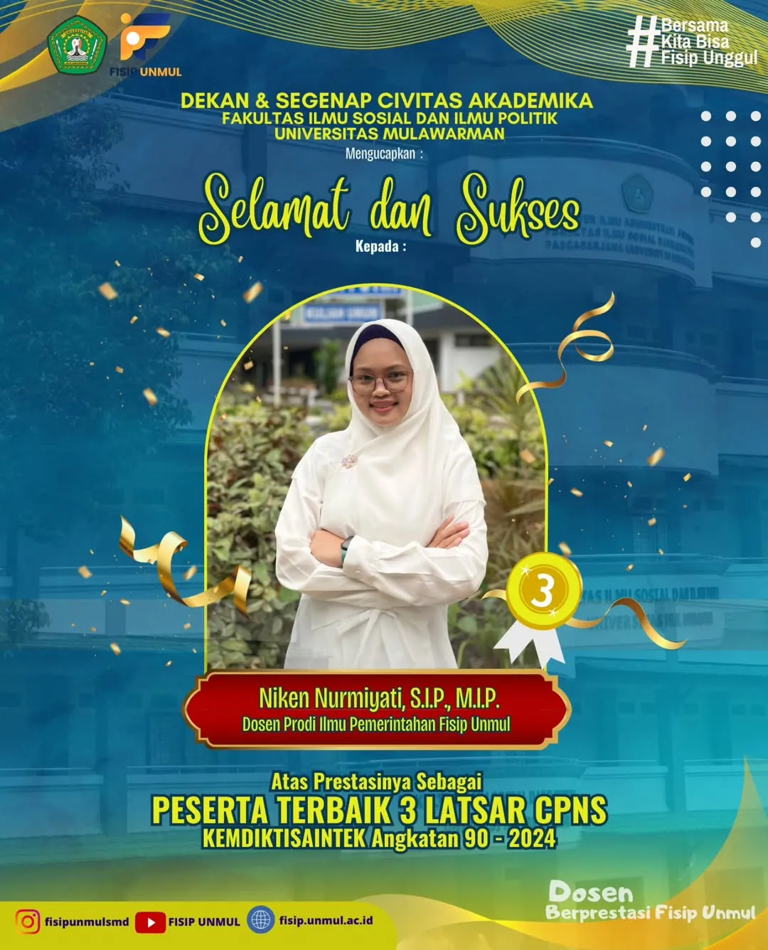 Selamat dan Sukses kepada Niken Nurmiyati, S.I.P., M.I.P. Dosen Prodi Ilmu Pemerintahan Fisip Unmul Atas Prestasinya Sebagai Peserta Terbaik 3 Latsar Cpns Kemdiktisaintek Angkatan 90-2024